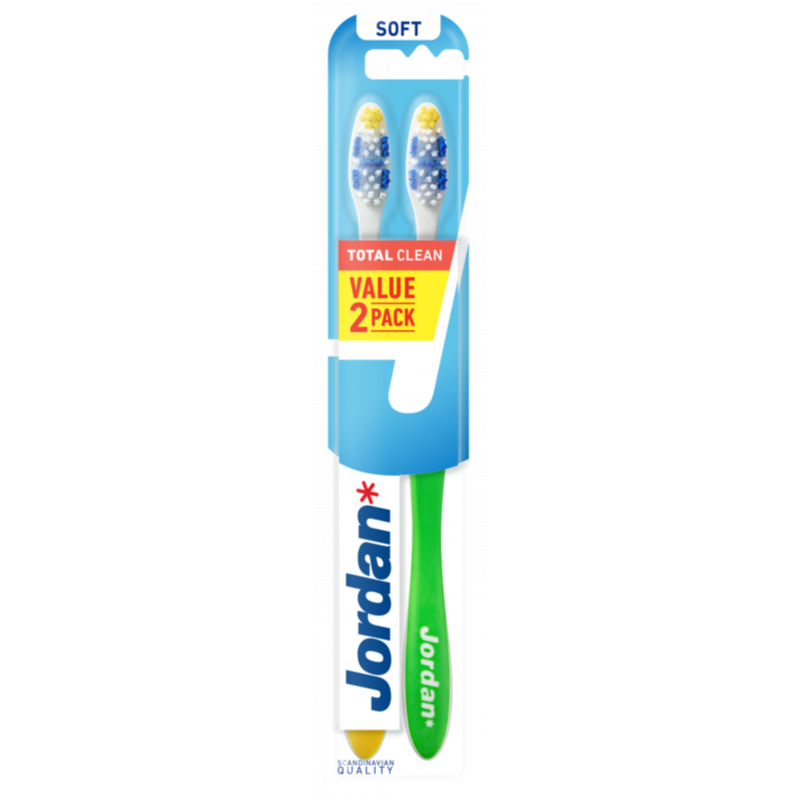 "Jordan Total Clean to szczoteczka nowej generacji w atrakcyjnej cenie:• wyprofilowane włosie dokładnie czyści nawet trudno dostępne miejsca • ergonomiczna rączka pozwala na pewny uchwyt • posiada czyścik do języka"