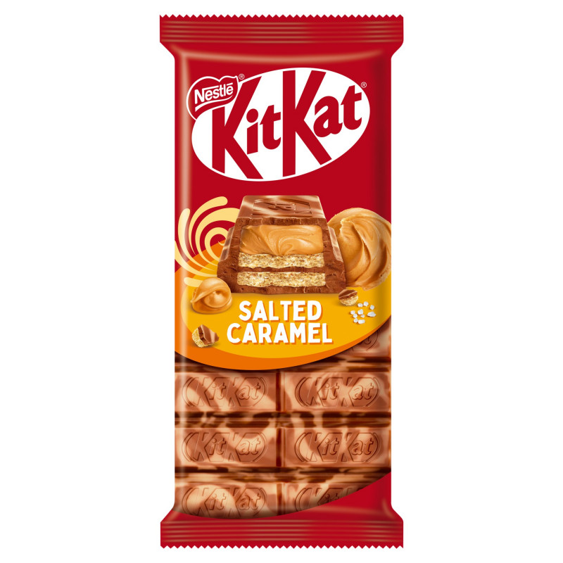 Zrób sobie przerwę i odkryj pyszny sposób na chwilę relaksu z tabliczkami KitKat - połączenie chrupiącego wafelka, nadzienia o smaku słonego karmelu oraz mlecznej czekolady o smaku karmelowym z białą polewą. Odpręż się, otwórz, połam i ciesz się satysfakcjonującym rytuałem dzielenia się smakiem.