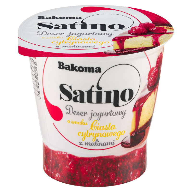 deser jogurtowy o smaku ciasta cytrynowego 83 % [mleko, śmietanka, mleko zagęszczone odtłuszczone, cukier, sok cytrynowy z zagęszczonego soku cytrynowego 3,1 %, cytryny 0,7 %, kawałki ciasteczek 0,6 % (cukier, mąka pszenna, mąka ryżowa, białko jaja kurzego, mąka z białej fasoli, skrobia pszenna, skrobia ziemniaczana, olej słonecznikowy, aromat, substancja zagęszczająca: alginian sodu; sól), naturalny aromat (zawiera jaja), koncentrat z marchwi, kultury bakterii jogurtowych]