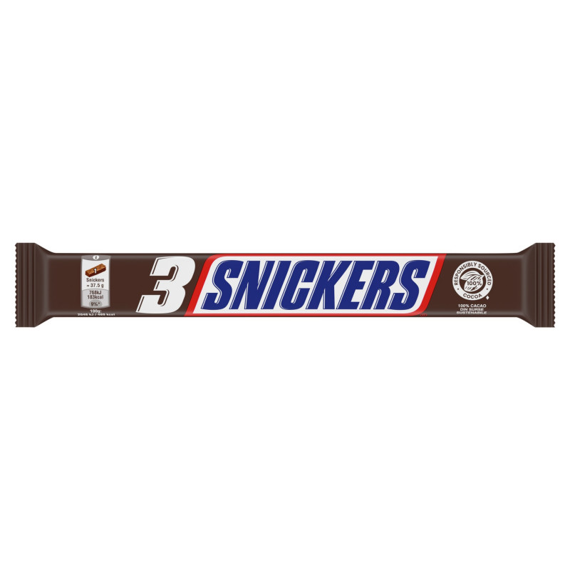 Czekolada mleczna (35 %) z miękkim nugatem (14 %) i nadzieniem karmelowym (28 %) z orzeszkami ziemnymi (22 %).