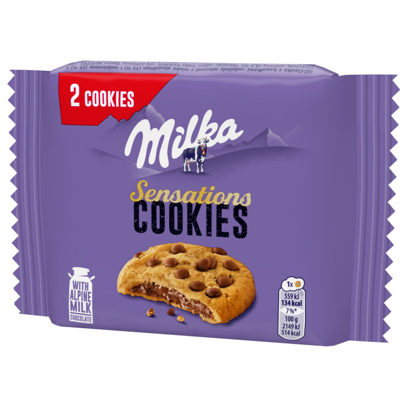 Ciastka Z Kawałkami Czekolady Mlecznej Z Mleka Alpejskiego (15 %) I Nadzieniem (25 %) Z Czekoladą Mleczną (4,5 %).
