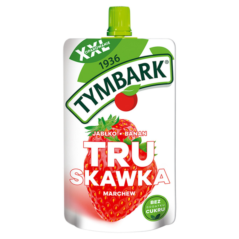 Składniki: przeciery z: jabłek (39 %), bananów (30 %), truskawek (26 %), marchwi (5%)