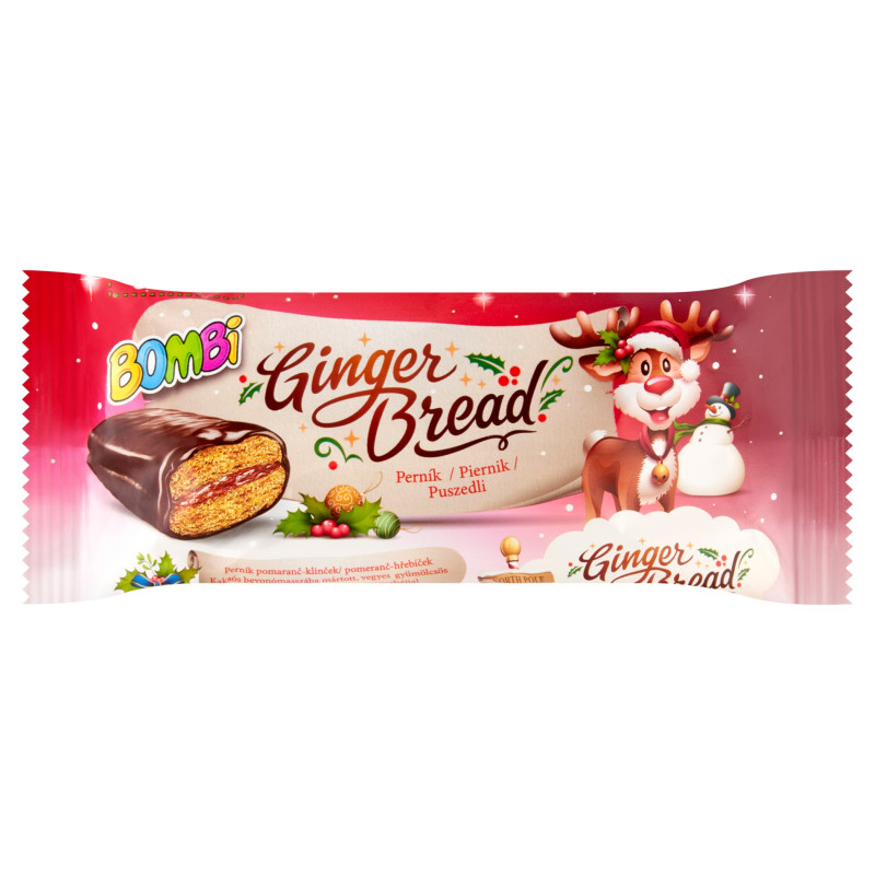 Piernik z nadzieniem (26 %) owocowo-pomarańczowym w polewie kakaowej.