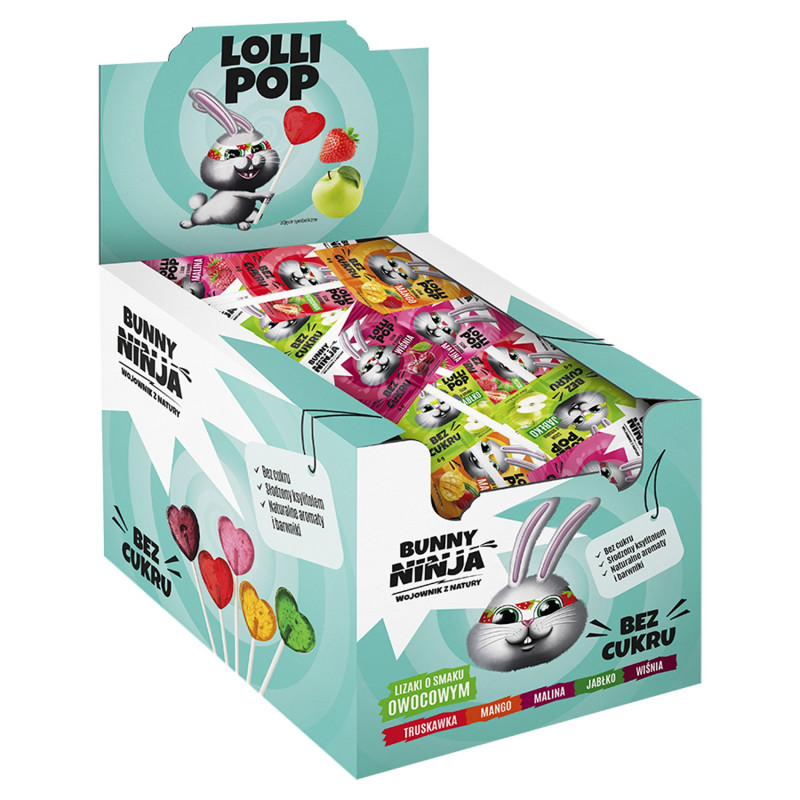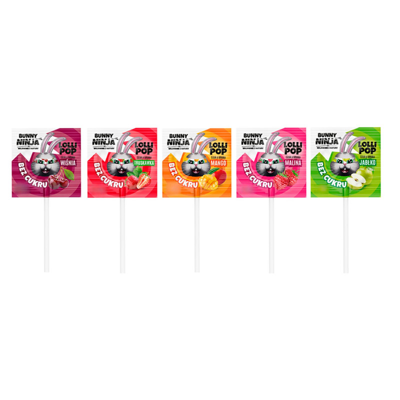 Lizaki bez cukru od Bunny Ninja to nowość! Występują one w pięciu owocowych smakach: mango, wiśnia, jabłko, malina oraz truskawka! Który z nich zostanie Twoim ulubionym? Faworytem są na pewno wszystkie! W trosce o zdrowie Maluchów i słodką chwilkę dla starszych, Bunny Ninja tworzy zdrowe słodycze, które są smaczne i pozbawione sztucznych składników!