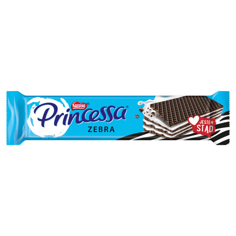 Kakaowy wafel przekładany mlecznym kremem 76,6 %.