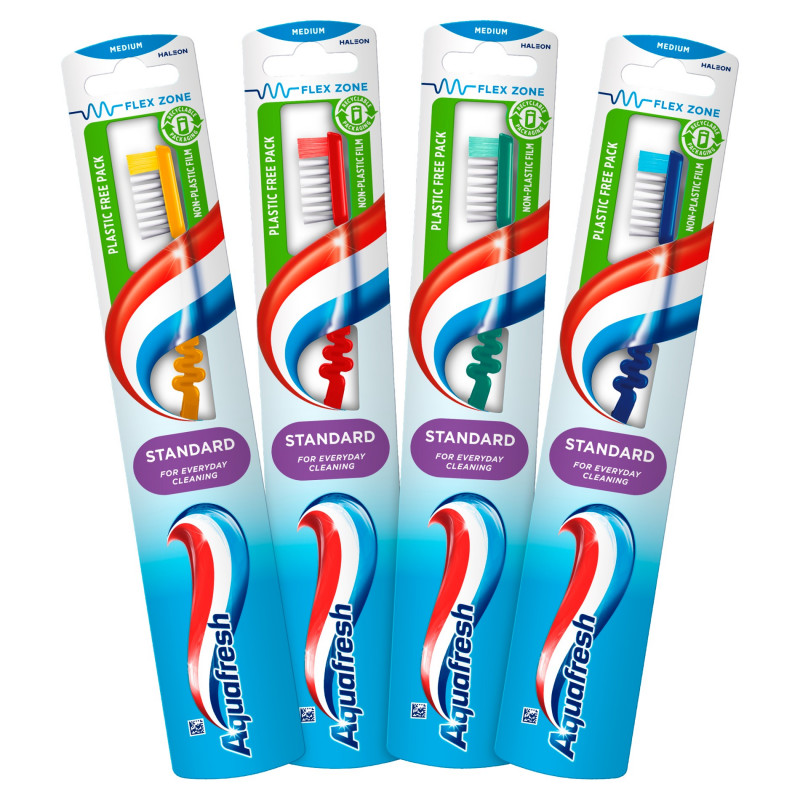 Aquafresh to jedna z najbardziej znanych marek produktów do higieny jamy ustnej na świecie. Kompleksowe portfolio past do zębów, płynów do płukania oraz szczoteczek wspiera ochronę dla całej rodziny. Szczoteczka do zębów Aquafresh Standard przeznaczona jest do codziennego stosowania. Zaleca się wymianę szczoteczki co 3 miesiące.