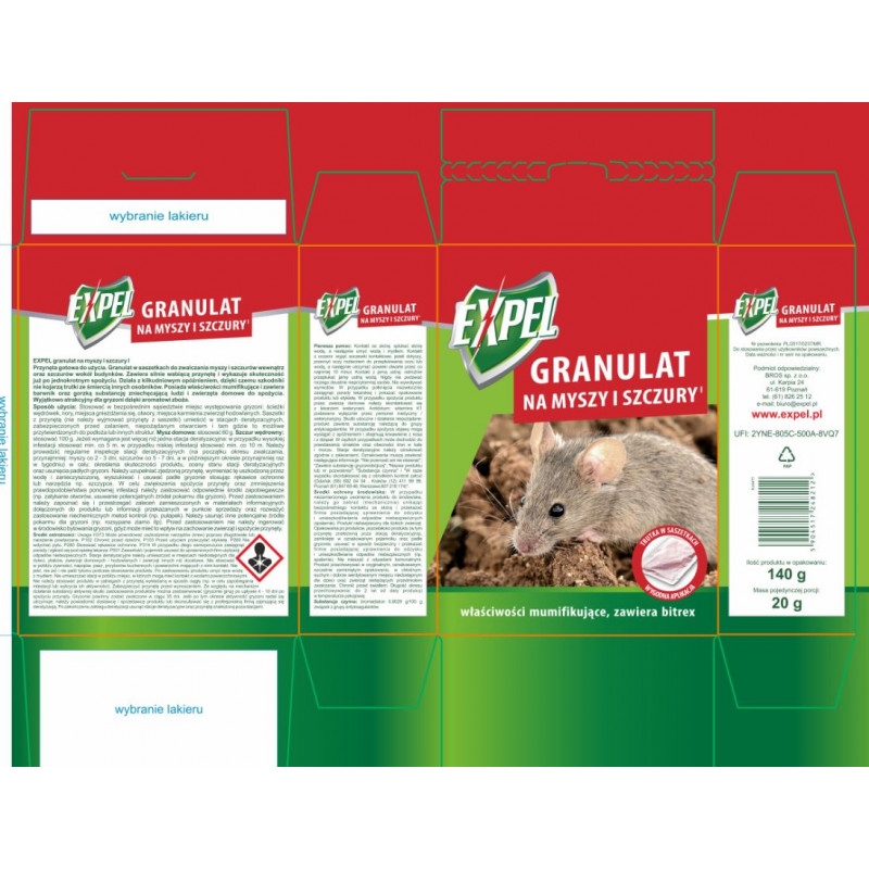 Zakres stosowania: Granulat w saszetkachdo zwalczania mysyzy i szczurów