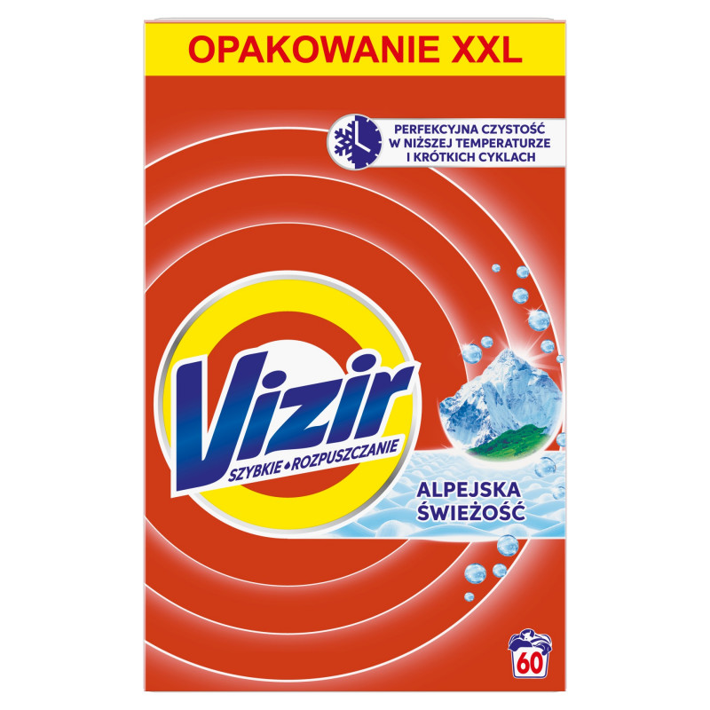 Vizir Skoncentrowany proszek do prania Alpine Fresh zapewnia nieskazitelnie czyste pranie nawet uporczywych zabrudzeń. Koniec widocznych osadów – technologia Anti-Residue aktywuje się natychmiast i sprawia, że ubrania będą nieskazitelnie czyste.