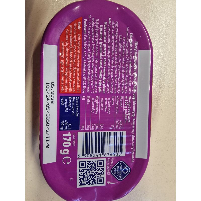 EVRAFISH -filety śledziowe w sosie pomidorowym 170 g