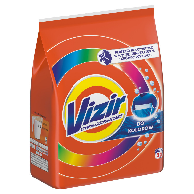 Vizir Color Skoncentrowany proszek do prania zapewnia nieskazitelnie czyste pranie nawet uporczywych zabrudzeń. Koniec widocznych osadów – technologia Anti-Residue aktywuje się natychmiast i sprawia, że ubrania będą nieskazitelnie czyste.