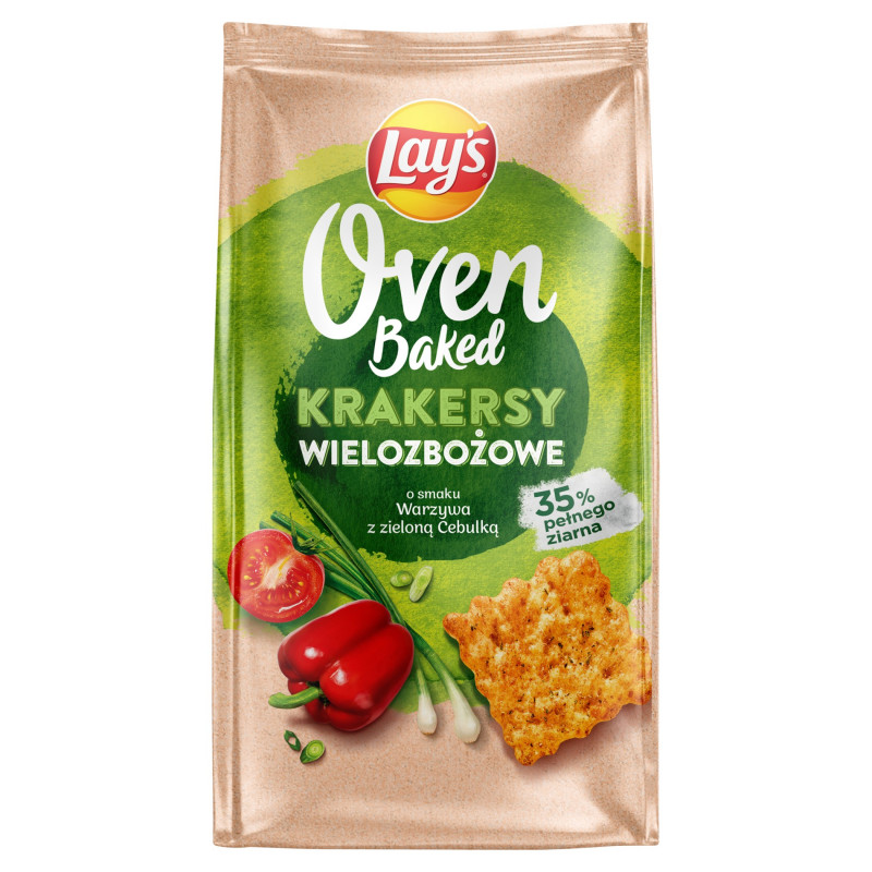 Pyszne i chrupiące krakersy wielozbożowe Lay's Oven Baked o smaku warzyw z zieloną cebulką.