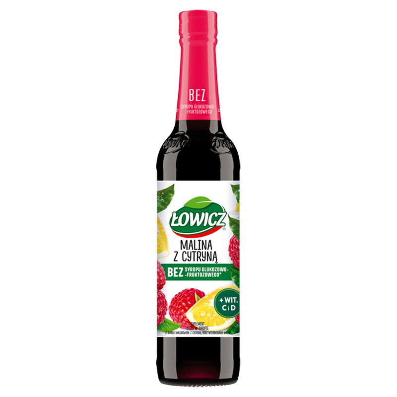 Suplement diety w syropie o smaku malinowym z cytryną oraz witaminami C i D. Pasteryzowany.