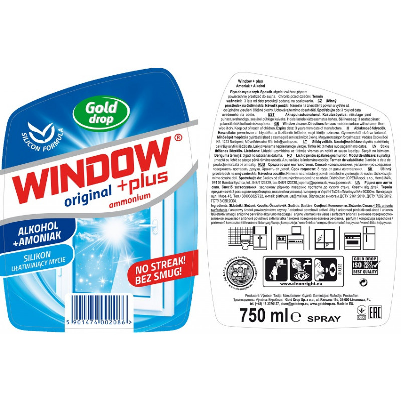 Jest to produkt o bardzo wysokich walorach użytkowych. starannie dobrane, najwyższej jakości składniki sprawiają, że płyn bardzo dobrze myje szyby oraz lustra. Dzięki zastosowaniu w składzie kombinacji odpowiednich składników, skutecznie usuwa nawet najtrwalszy, zaschnięty brud i tłuste plamy, a także sprawia ze czyszczona powierzchnia pozostaje błyszcząca bez konieczności polerowania. Wysoka jakość gwarantuje uzyskanie krystalicznie czystych, lśniących szyb, bez smug i zacieków. Przeznaczony jest do stosowania w całym domu. W czasie mycia szybko wysycha, co jest istotne w okresie zimowym. Składniki chemiczne płynu są nieszkodliwe dla środowiska i ulegają biodegradacji. ammonium - płyn w swoim składzie zawiera amoniak oraz alkohol